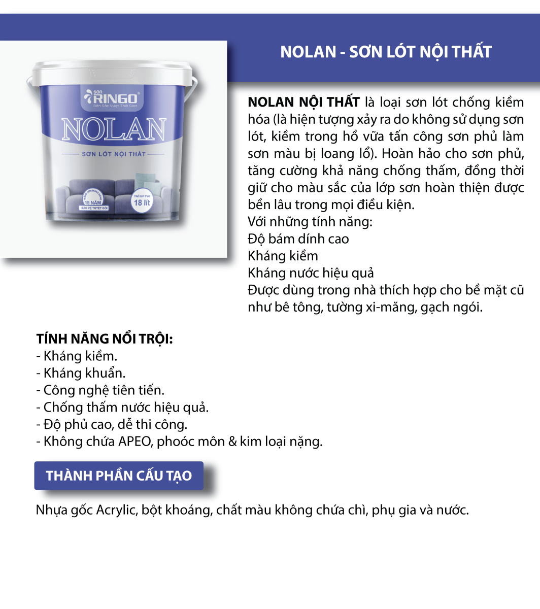 | Sơn lót ngoại thất NOLAN | 01 Lớp |