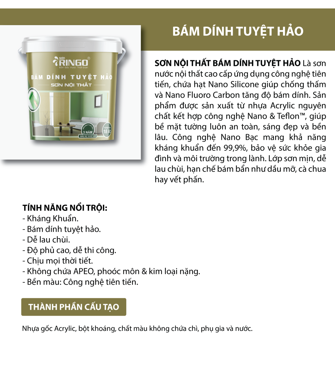 | Sơn nội thất BÁM DÍNH TUYỆT HẢO | 02 lớp |
